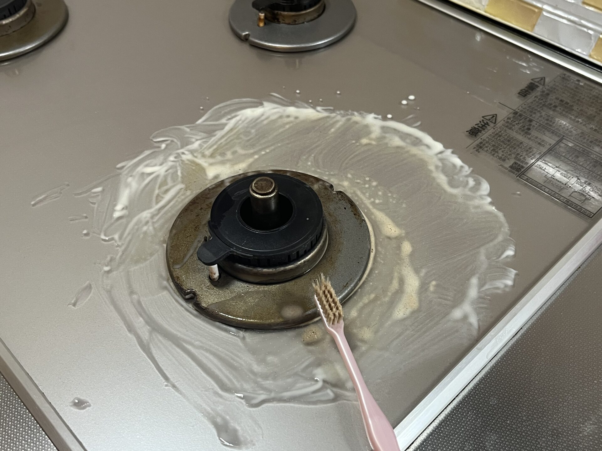 こんなに楽に焦げ付き汚れが落ちるならばと、ガスコンロの3年越しの汚れも試してみた。