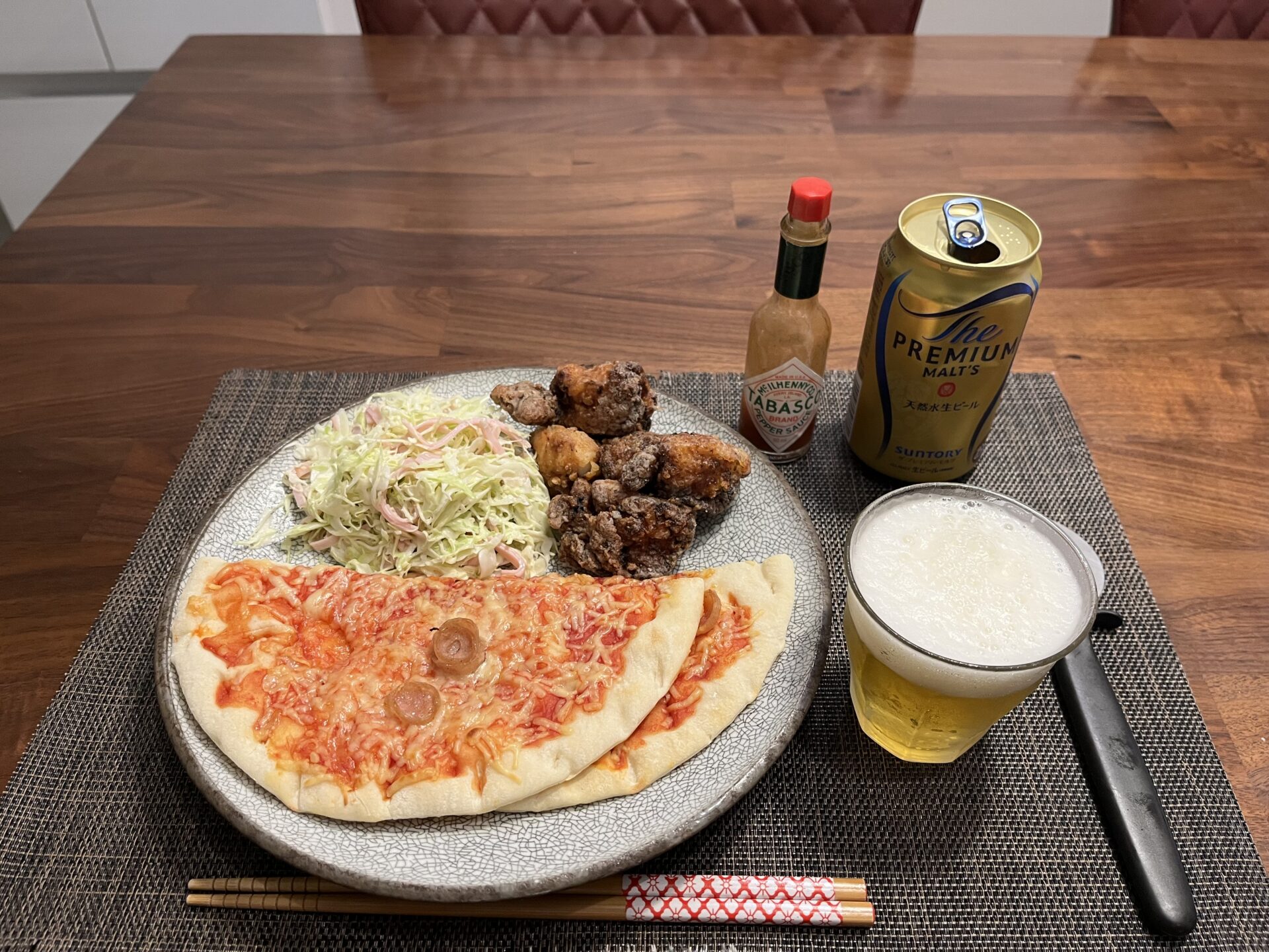 今日は歯医者の治療時間が案外長く、買い置きのピザと冷凍していた唐揚げで簡単に済ませた。