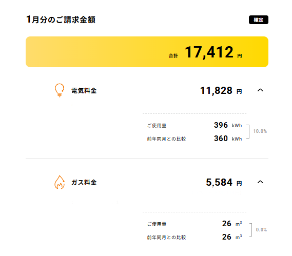 1月分の電気代には、契約している電力会社独自の10%割引が適用されている。