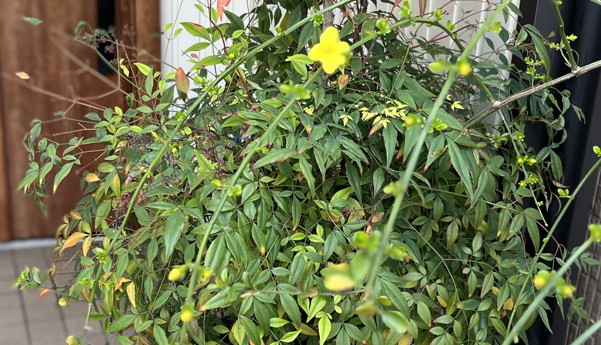 玄関先の雲南黄梅が咲き始めた。