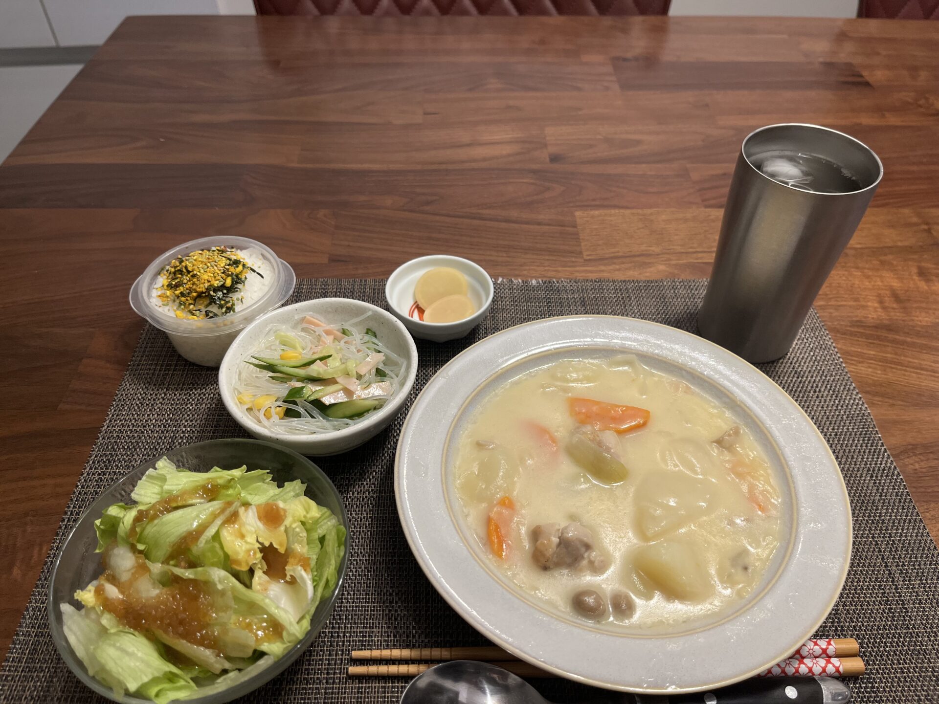 今日も美味しい芋焼酎を飲んで、温かいクリームシチューを食べて