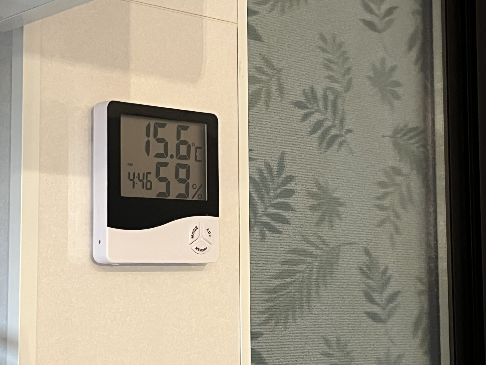 まずは暖かいモノを羽織り、暖房器具を使えば普通に暖かく過ごせるが、室温は気になる。