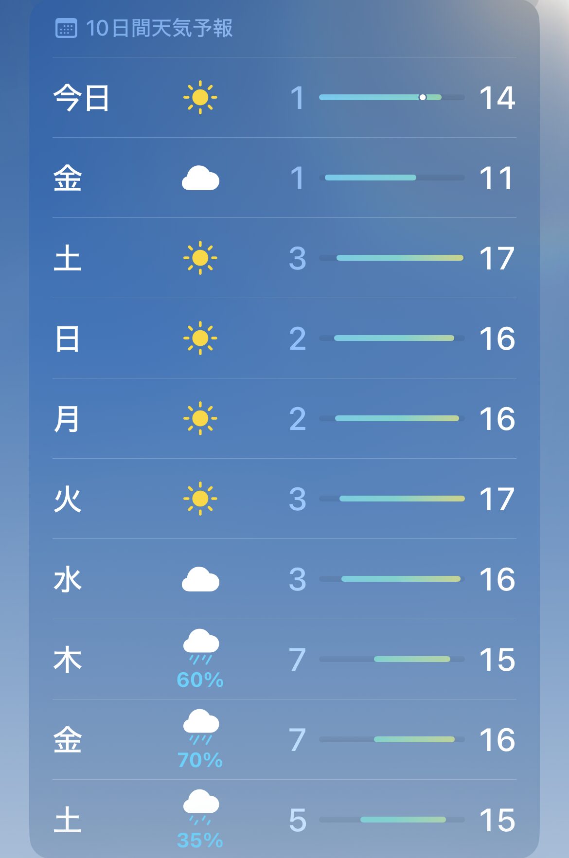 当地の10日間天気予報を確認したところ、この先ぐんぐん気温上昇